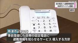 事前登録の固定電話にも避難情報提供 魚津市がシステム整備へ|NHK 富山県のニュース 【NHK】携帯電話やスマートフォンを持たない人にも避難情報などを伝えるため、魚津市は、事前に登録した固定電話を自動でならし情報提供するシステムを整備…