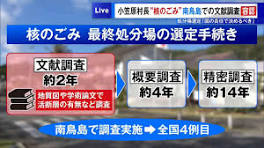 原子力発電に伴ういわゆる“核のごみ”の最終処分場の選定に向けた南鳥島の「文献調査」について、きょう(13日)、東京・小笠原村の渋谷村長は、調査を実施する ...